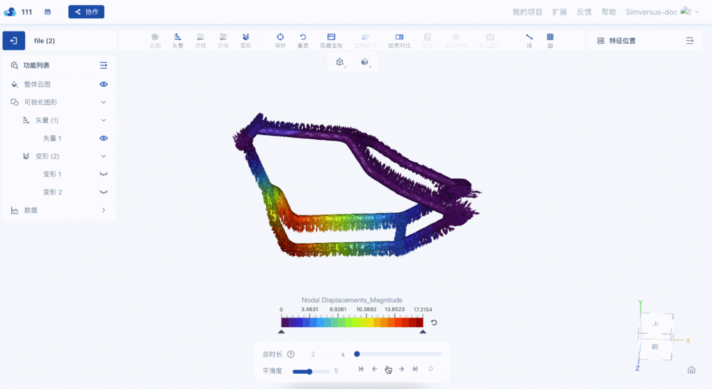播放动画时,系统会暂时限制部分操作:不能新增 / 修改可视化选项(但可以点击 “眼睛” 图标开关内容的显示 / 隐藏),也不能操作右侧的 “特征位置列表”,确保动画播放不卡顿、不中断。