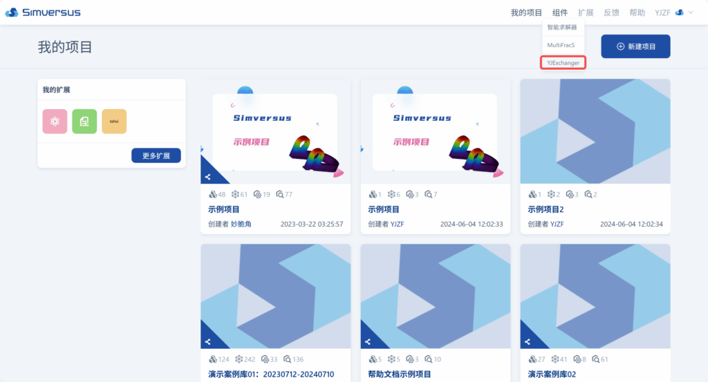 (3) 从Simversus云平台的菜单中,选择跳转到YJExchanger组件独立页